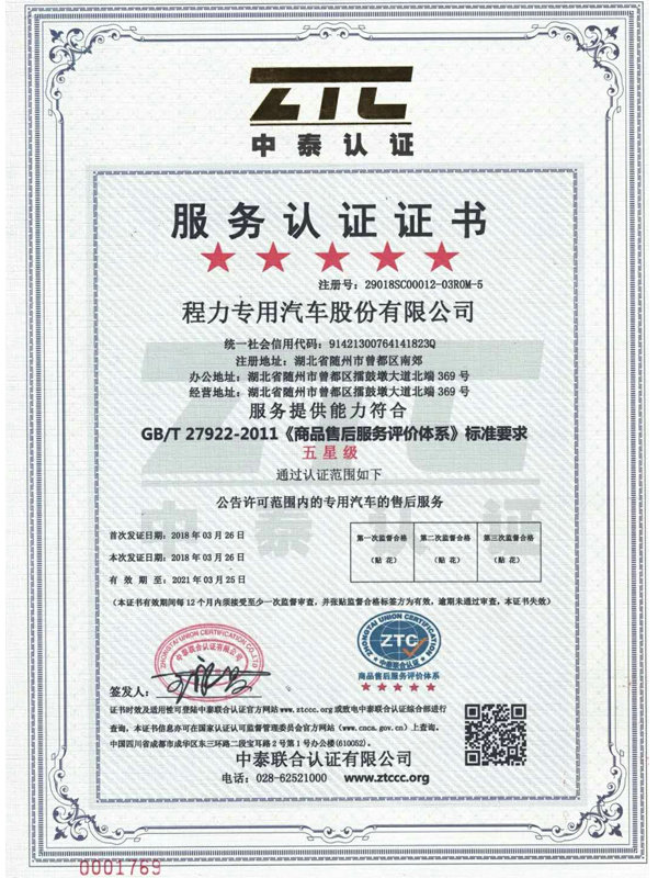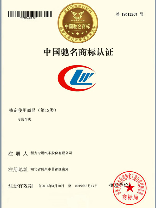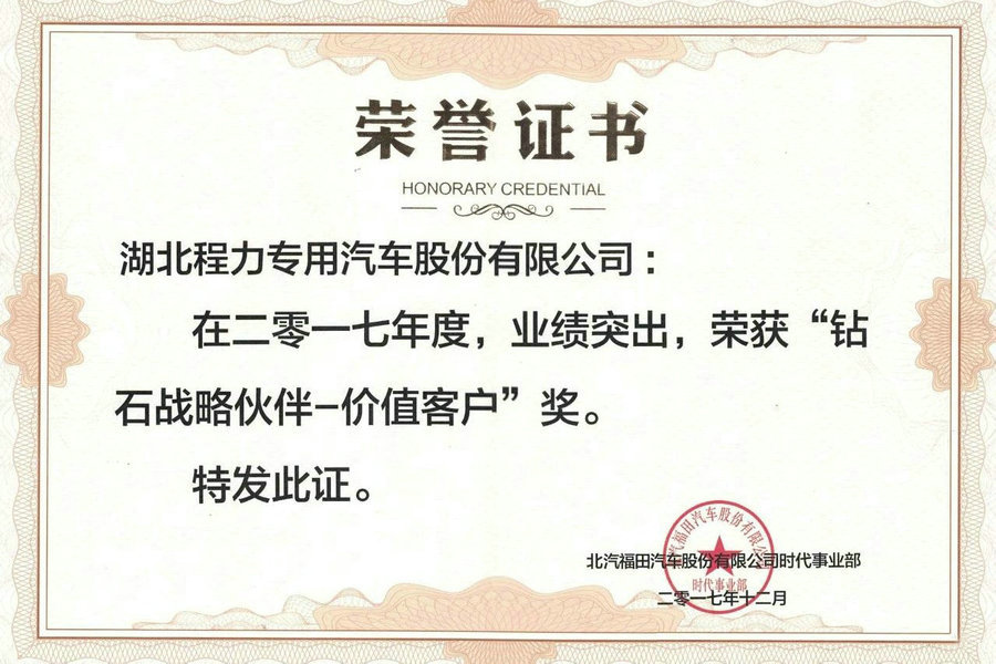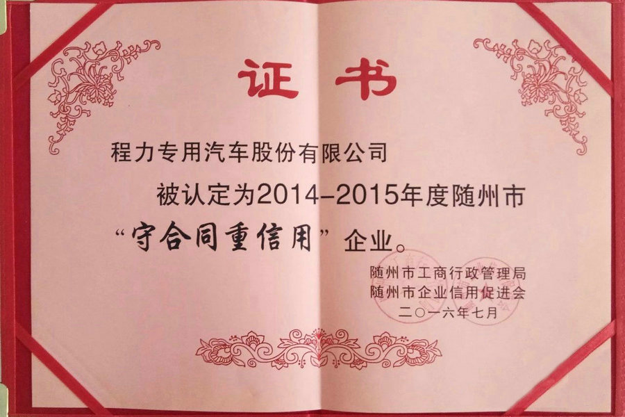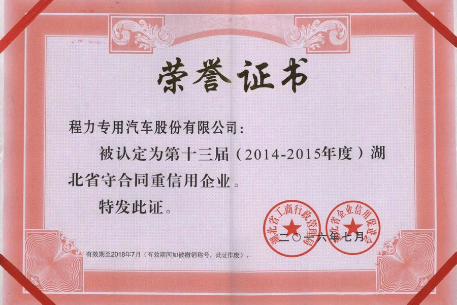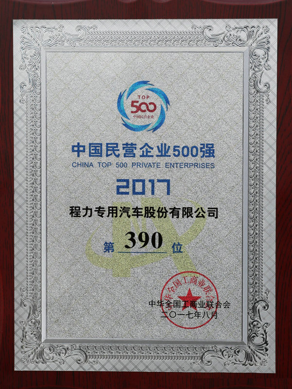 集團主要支柱成員程力專用汽車股份有限公司先后被隨州市政府評為“先進單位”、“外貿先進單位”、“工業(yè)八強企業(yè)”、“貢獻突出企業(yè)”、“十強納稅企業(yè)”,湖北省國稅局“全省國稅百佳納稅人”,湖北省“守合同重信用”企業(yè)等榮譽稱號;國家“高新技術企業(yè)”,公司“程力威”商標榮獲湖北名牌。