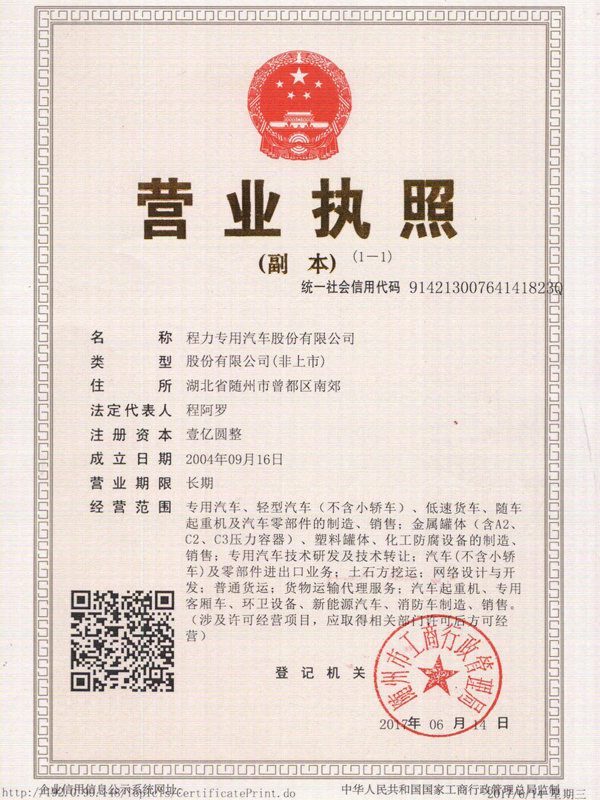 程力專用汽車股份有限公司——中國民營企業(yè)500強,總部位于炎帝神農故里,編鐘古樂之鄉(xiāng),中國專用汽車之都——湖北省隨州市,集團由母公司湖北程力集團有限公司和3個控股子公司湖北程力置業(yè)投資有限公司、隨州市經濟開發(fā)區(qū)程力小額貸款有限公司、湖北程力融資租賃有限公司和3個關聯(lián)公司程力專用汽車股份有限公司、湖北程力融資租賃有限公司、湖北程力投資有限公司組成,是集汽車技術研發(fā)、汽車制造、汽車改裝、汽車零部件、金融、教育、置業(yè)投資為一體的多元化集團。