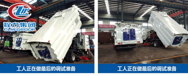 24、東風(fēng)天錦洗掃車不銹鋼垃圾箱,容積達(dá)7m3,廂體采用傾翻卸料。